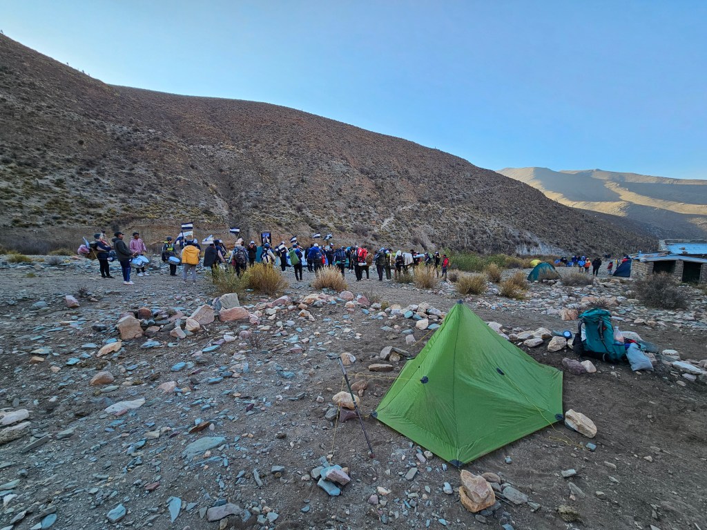 A noite a 3700 metros, evidentemente, foi muito fria, e eu não dormi nada apesar de botar protetores auriculares e tomar melatonina, porque as bandas tocaram ao longo de TODA a madrugada para se manterem aquecidas, já que muitos peregrinos não conseguiram espaço dentro dos abrigos do santuário e não possuíam equipamento para dormir quentinhos em suas barracas.